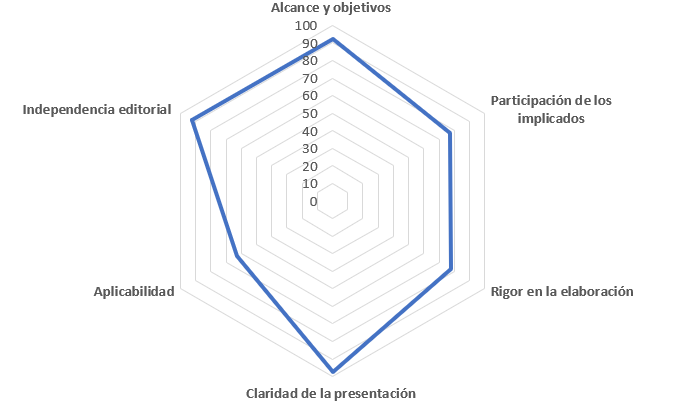 Figura 1. Gráfico de las puntuaciones medias de la guía de práctica clínica evaluada en los seis dominios del instrumento AGREE II